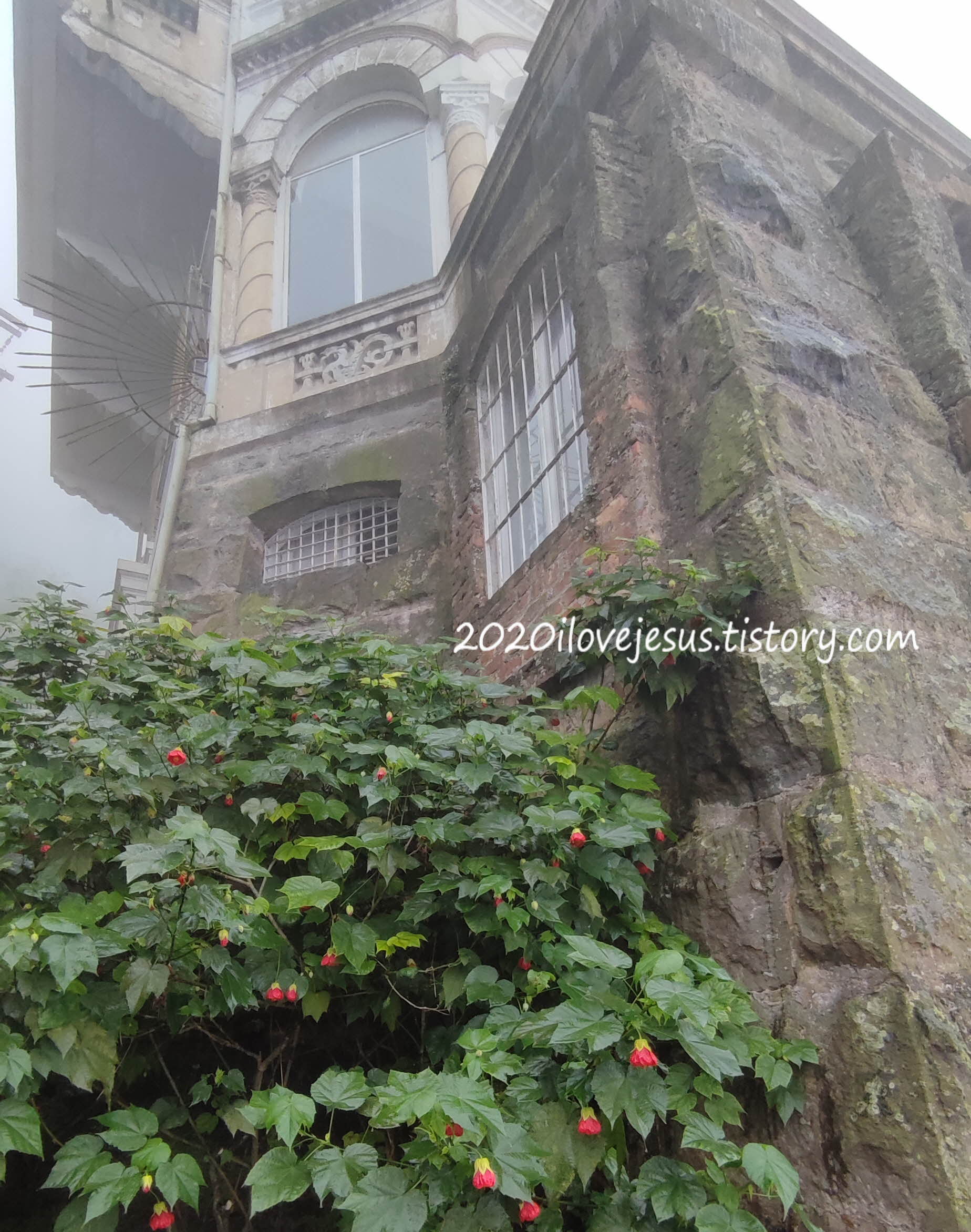 전망대(Mirador Salto del Tequendama)로 내려가봅니다. 역시 아무것도 안 보이지만 그래서 폭포 소리에 더 집중하게 됩니다. 돌계단 틈에 자란 잎이 작은 풀, 빗방울이 맺힌 거미줄, 비를 피해 잎을 모으고 고개를 숙인 빨간 꽃도 눈에 들어옵니다. 날씨가 화창하고 장엄한 폭포가 분명하게 보였다면 그냥 스쳐 지나갔을지도 모를 조연들이 비와 안개 덕분에 활약하는 중입니다.