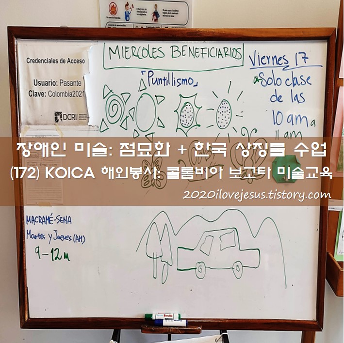 (172) 장애인 미술: 점묘화 Pointillism + 한국 상징물 수업, 아크릴물감 풍경화 그리기 (ft.콜롬비아보고타미술교육)